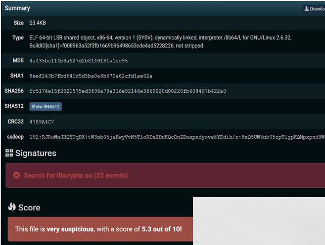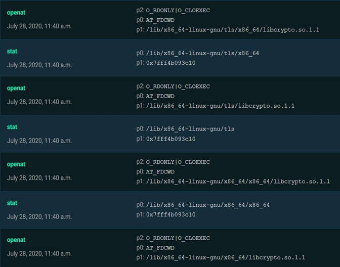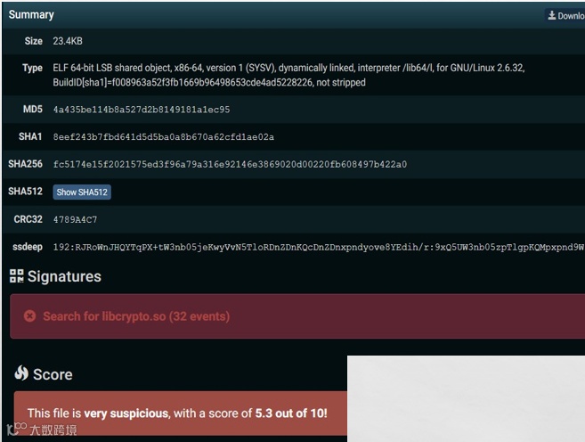 当沙箱运行过程中本条策略被多次命中时,可以基本确定被分析的的样本在系统上搜索libcrypto.so,此时可以结合其他检测策略提升对恶意样本检测的准确率。