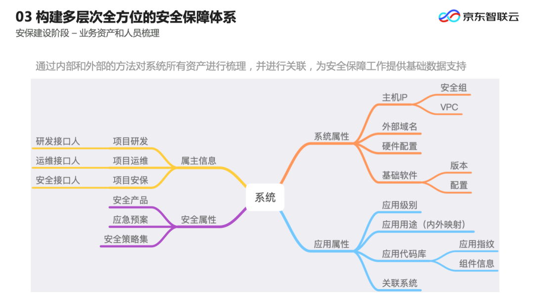 如上图所示,是以系统视角对系统所属的资源、人员、应用和安全配置进行梳理和关联。