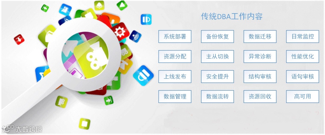 传统DBA岗位的具体工作是什么呢?不同公司有着不同的企业文化、业务特点、系统架构、技术积累等,所以DBA职位的工作内容也不近相同。在大公司会将DBA分为运维DBA和开发DBA,分别侧重数据库运维和数据库开发使用两个方向。而小公司DBA的工作就不会分那么清了,总体的工作还是围绕数据库运维和使用开展的。