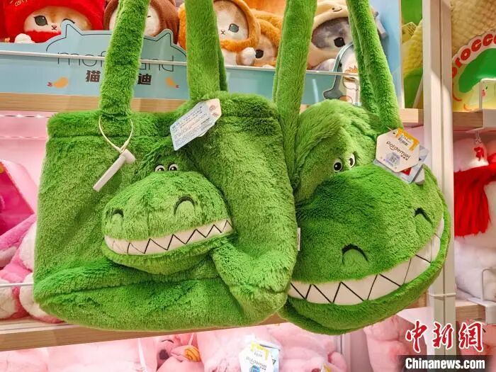 5月25日、済南市の芙蓉街にある文化クリエイティブグッズショップに並ぶ「ブサかわいい」カバン(撮影・王採怡)。