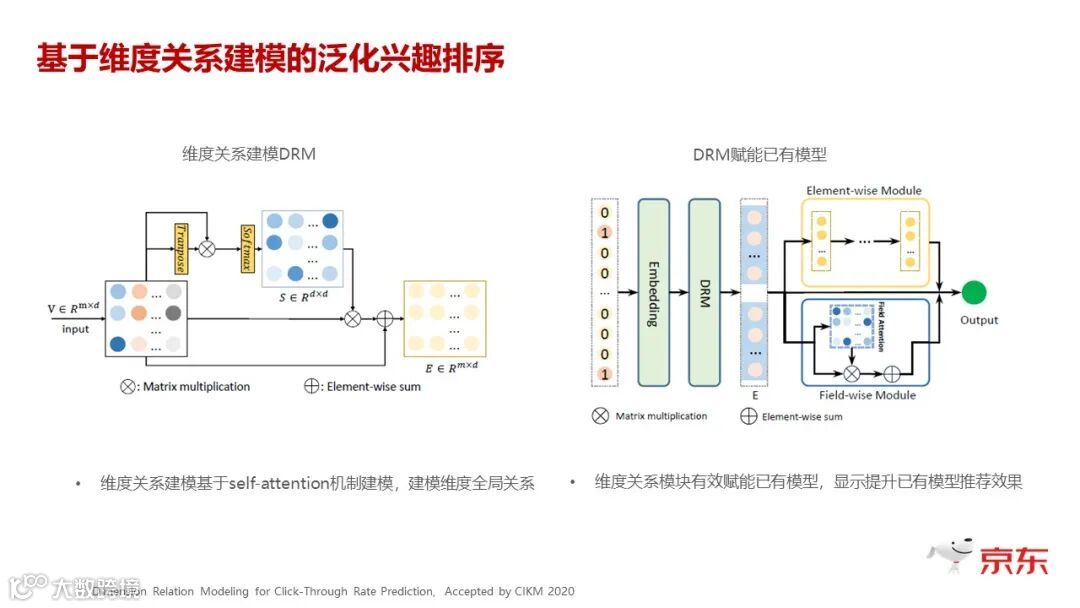 上图就是我们构建出来 DRM 模块。左边是实现的过程,可以看到,其实过程并不复杂。上面是矩阵,这个矩阵其实就是一个 self attention 的过程,下面只是一个这个支链的边,能够保证模型的迭代、收敛会更快,所以这是一个特别简单的通用组件。