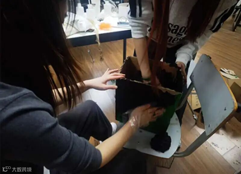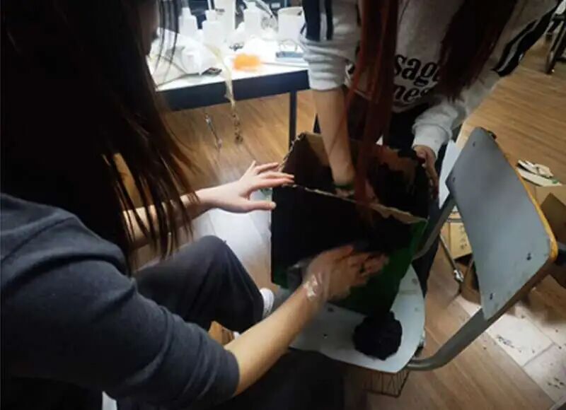 同大学の学生たちで構成されるsavage(野人)設計チームは持続可能性の観点から、コーヒーかすを主な原材料に容器を作り、美観とグリーン・環境保護を兼ね備える「コーヒーかす再利用ガーデン」を作り上げた。チームが資料を当たったところ、グリセリンとゼラチンをコーヒーかすと混ぜることで硬い素地を形成できることが分かったが、実験結果は予想通りの効果に至らなかった。材料実験を繰り返し、異なる材料と配合率を選定し、最終的に現在のダンボール箱をベースにしてコーヒーかすを塗り付けたガーデニング用の容器を作った。