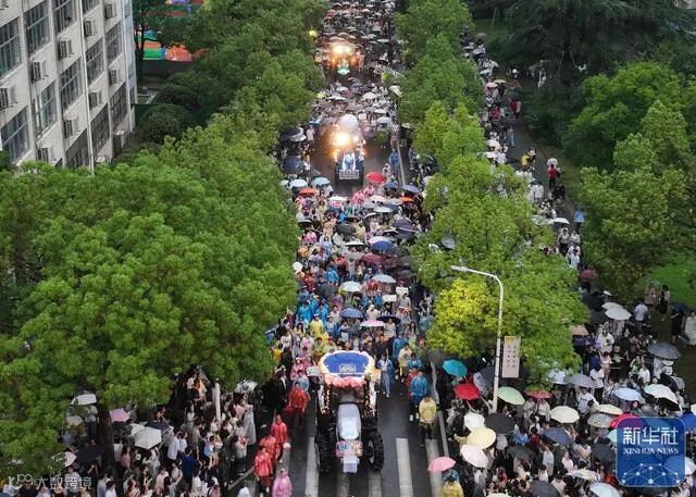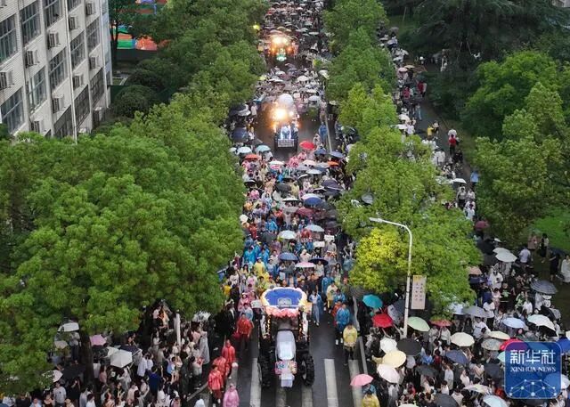 湖北省武漢市の華中農業大学は21日夜、トラクターなどの農業機械15台が走行する卒業パレードを行った。教員や学生2万人以上が参加して、農業大学ならではの卒業イベントを楽しんだ。