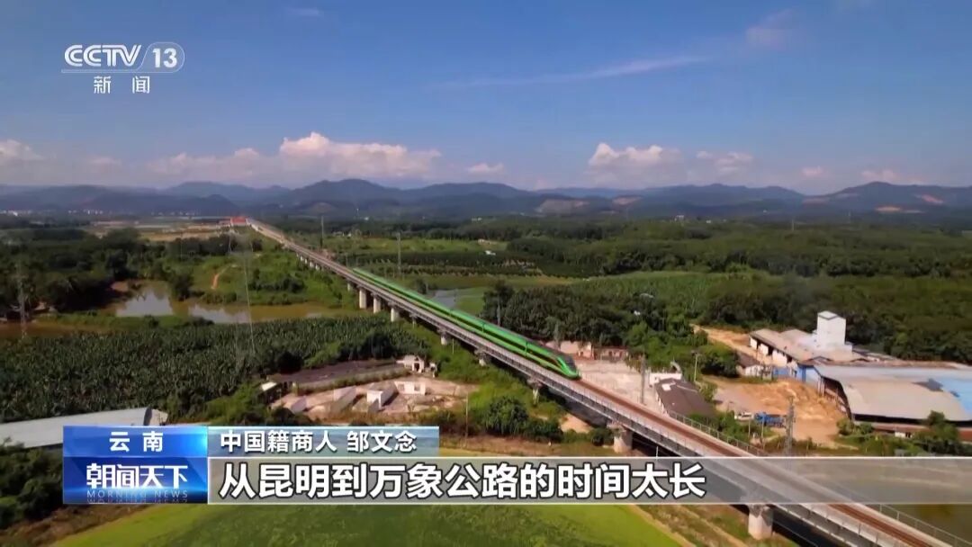 2023年4月13日、中国ラオス鉄道の国際旅客列車の運行が始まり、旅客は同鉄道を経由して、南アジアや東南アジア、西アジアに直接向かうことができるようになった。また、ラオスやタイ、ミャンマー、ベトナムといった「一帯一路」(the Belt and Road)参加12ヶ国が同鉄道を経由して、物品を輸出入できるようになった。