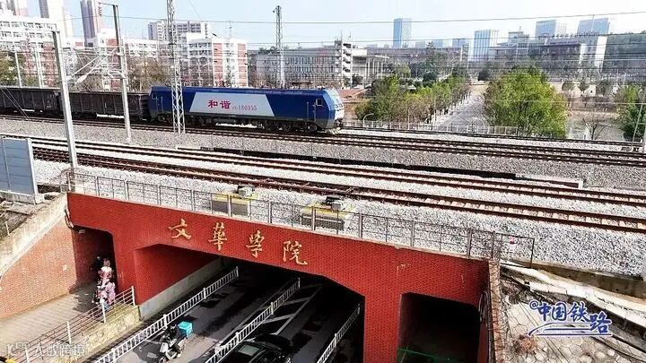 実は、「文華学院」の北門トンネルの上には橋が2本並行して架かり、都市を走る鉄道が都市の隅々を結び、大量の旅客と貨物の輸送任務を担っている。大学によると、ここに引っ越してから、キャンパスの地理的特徴に合わせて、鉄道のトンネルを大学の門にしたという。