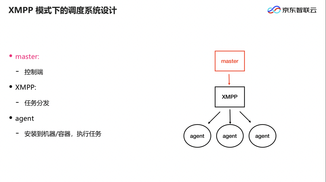 XMPP 本身性能强劲,单个集群可以应付百万客户端规模,实现秒级调度、执行。