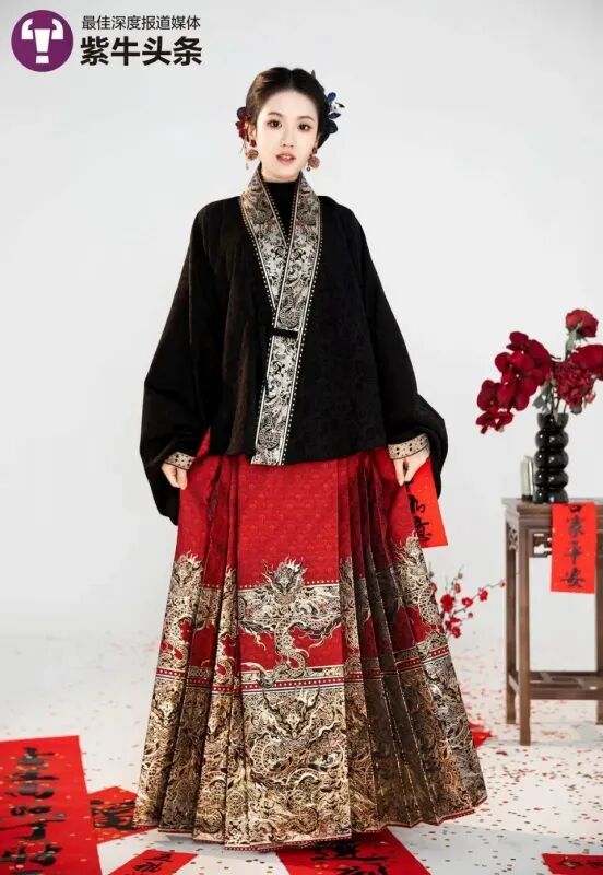 華やかで凛としている「辰年のキメ服」をテーマにした中国伝統衣装の「馬面裙」の動画が最近、大きな話題となり、若い漢服デザイナーである劉雯悦さんの知名度がアップしている。劉さんがデザインしたその「馬面裙」は、赤と黒の2色あり、どちらも華やかで凛としており、スカート部分にデザインされている竜は、迫力に満ち、厳かな雰囲気を醸し出している。劉さんがその「馬面裙」の動画を撮影して、ショート動画アプリにアップしたところ、フォロワーから絶賛する声が次々と寄せられるようになったという。