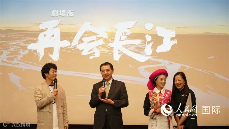 上映が終わり、感動も冷めやらぬ中、蔵族の伝統衣装を着た茨姆さんがサプライズ登場すると、会場は大きな歓声に包まれた。その後、呉大使と竹内監督、茨姆さんでトークが行われた。竹内監督は、10年ぶりに長江を撮影して肌で感じたことや、ユニークなエピソードなどを紹介したほか、ここ10年の中国の急速な発展、激変した都市部、農村部の様子などをしみじみと語っていた。茨姆さんは、日本に来た感想を語り、「将来の夢は、民泊施設の規模を拡大し、一人でも多くの人に生まれ故郷の魅力を伝え、環境改善や経済発展を促進すること」とした。呉大使は、「再会長江」を鑑賞した感想を交えながら、茨姆さんに、「頑張って、もっと素晴らしい暮らしができるようになってほしい」と激励したほか、竹内監督には、「一つでも多くの素晴らしいドキュメンタリーを撮影し、新時代における生き生きとした中国のリアルな様子を客観的に伝えてほしい」とした。
