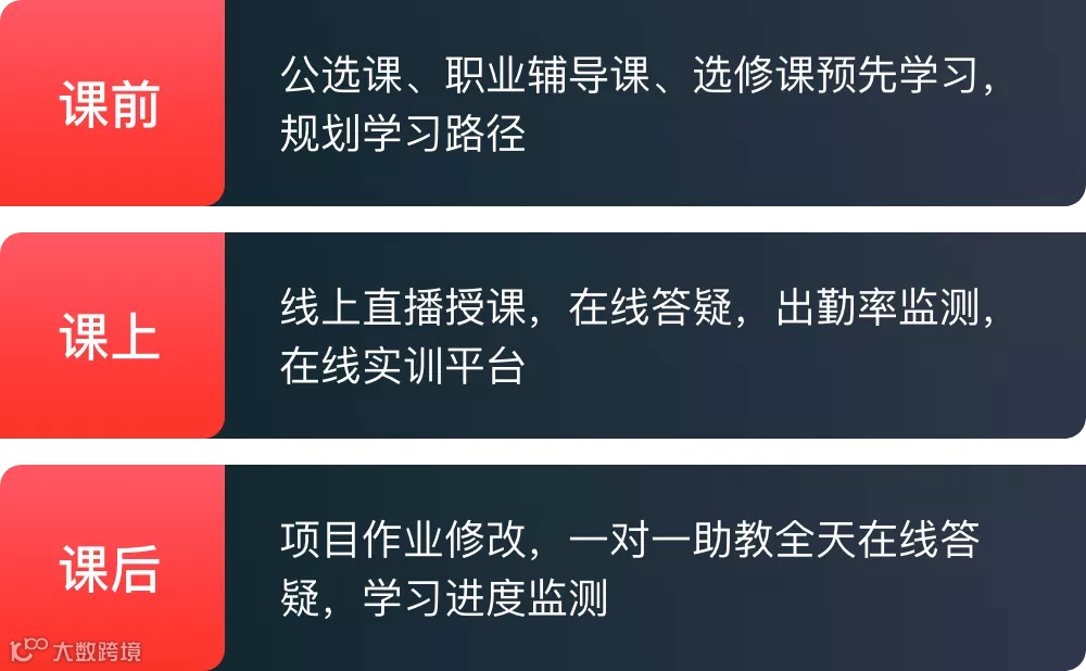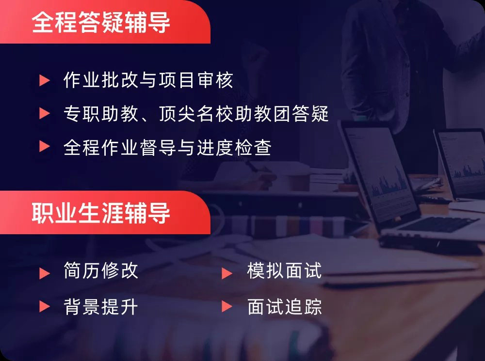 每次开班,我们都会配备班主任,实时统计学员出勤情况,监督课堂纪律,并且跟进学员的学习进度,全程作业督导。除了正常答疑外,班主任、助教还会实时分享一些行业内的热点事件,与班级学员沟通讨论,营造积极学习氛围。