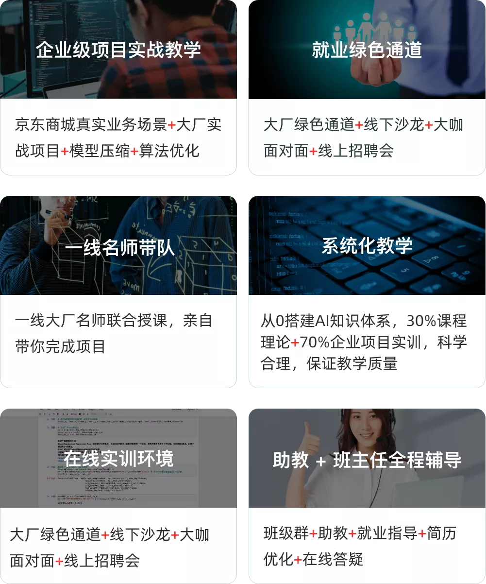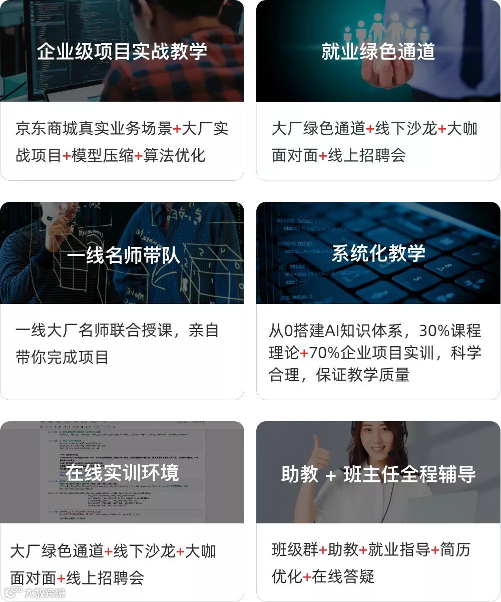报名课程,最关心的是就业问题。我们的AI课程在过去的3年中,培养出的算法工程师超过500名,其中100多名就职一线大厂名企中的算法岗位。