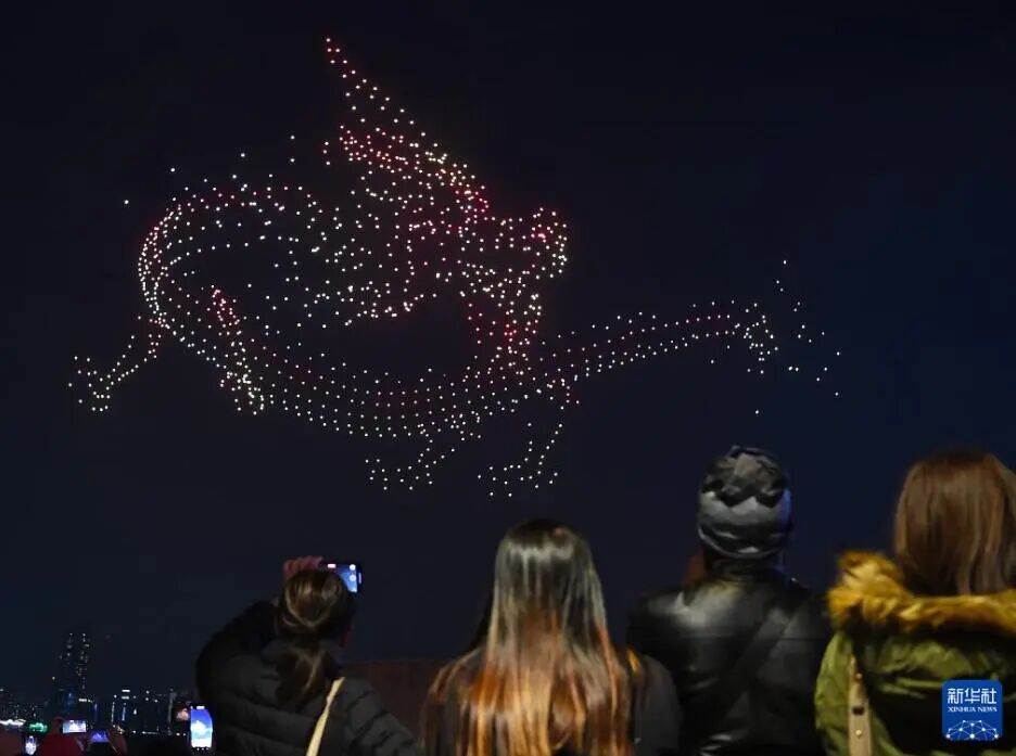 「艶やかな香港」をテーマにした大規模ドローンショーが1月28日、香港特別行政区の湾仔海浜(ビクトリアハーバー)で行われ、ドローン編隊が、ビクトリアハーバーの夜空に、香港を象徴する様々なイメージを描き出した。またドローン編隊は夜空にスマホでスキャンすると香港観光に関する各種情報を入手できるQRコードを夜空に描き出し、観光客を楽しませた。詳しくはこちらへ