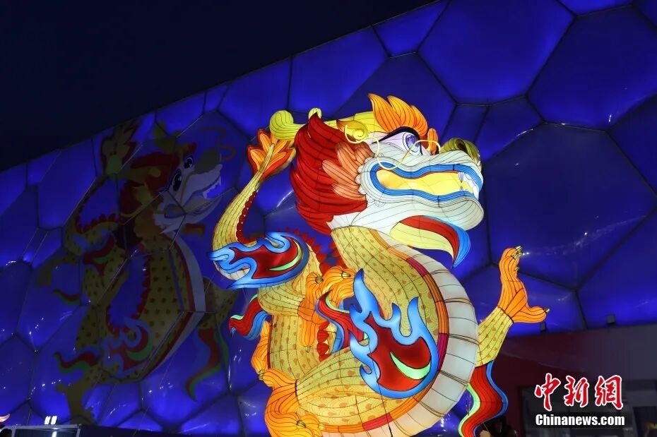 北京市にある中国国家水泳センター「水立方(ウォーターキューブ)」では1月31日、「吉祥竜」の飾り提灯と「水立方」の外装フィルムに映し出された「吉祥竜」の巨大景観が、互いを引き立て合っていた。春節(旧正月、2024年は2月10日)を控え、国家水泳センターは、新春特別シリーズイベント「竜耀水立方」をスタートした。市民や観光客は、展示や無形文化遺産「竜踊り」のパフォーマンス、新春テーママーケットなどを通じて、濃厚な春節ムードを楽しむことができる。詳しくはこちらへ