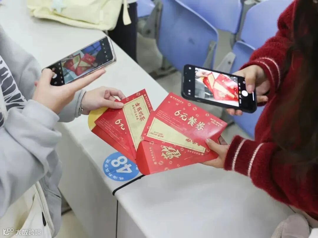 学生が受け取るお年玉には食堂で使える6元(1元は約20.9円)分のミールクーポンが入っており、「六六大順」(すべてうまく行きますように)という意味が込められている。また3.5元から126元までとさまざまな金額の「大学版消費クーポン」1万枚がランダムに入っており、火鍋レストラン、ミルクティーカフェ、グルメショップ、スーパーマーケット、携帯電話・コンピューター修理店など大学構内にある70数店舗と、シェア自転車や学内バスなどの移動交通手段を利用する時に使用でき、学生の飲食・住・移動をカバーしている。