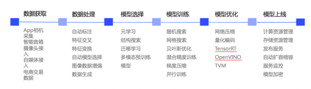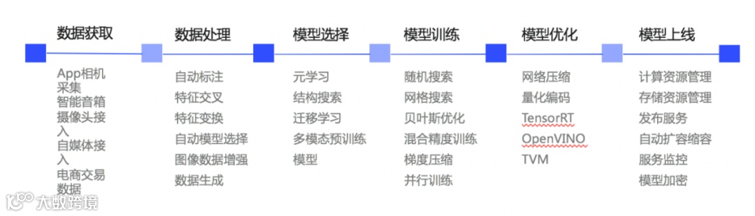 2. 自动化。整个流程AI相关的部分全部自动化,客户可以快速看到AI赋能的效果,在模型迭代中算法工程师不需要或很少参与。