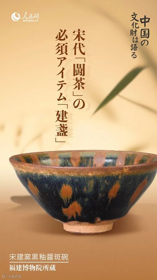 「建盞」は、多くの名窯があった宋の時代に、「建窯」で作られた黒釉のかかった茶碗で、古代の建州で作られた「盞」(杯状の器)であることから「建盞」の名がある。日本では「天目茶碗」という名前で知られている。その誕生は、宋の時代の「闘茶」文化と密接な関係がある。「宋の時代の『建盞』を理解すれば、宋代の人々が愛した茶文化の優雅な境地を理解することができる」と言う人もいる。