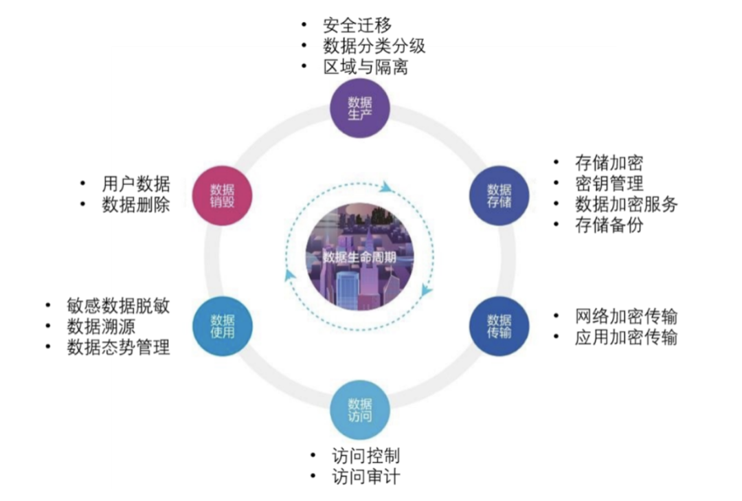 接下来将根据京东智联云在数据安全管理方面的经验总结出在数据生命周期不同阶段的数据安全管理实践方法: