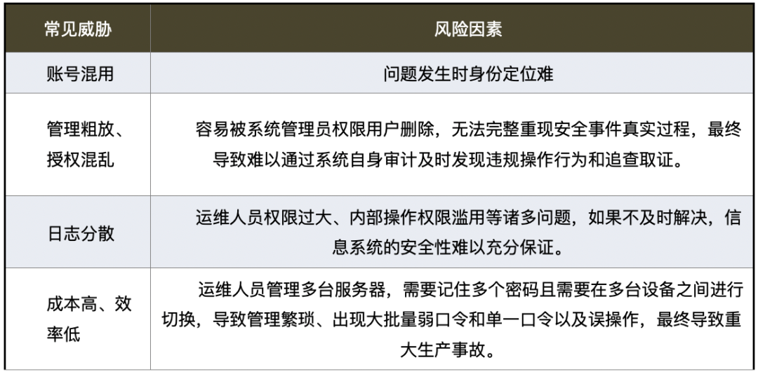 随着信息化的发展,企事业单位 IT 系统不断发展,网络规模迅速扩大、设备数量激增,建设重点逐步从网络平台建设,转向以深化应用、提升效益为特征的运行维护阶段, IT 系统运维与安全管理正逐渐走向融合。信息系统的安全运行直接关系企业效益,构建一个强健的 IT 运维安全管理体系对企业信息化的发展至关重要,对运维的安全性提出了更高要求。