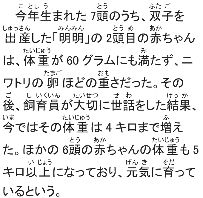 日文朗读 | 陕西出生仅1个鸡蛋重的熊猫长大了!
