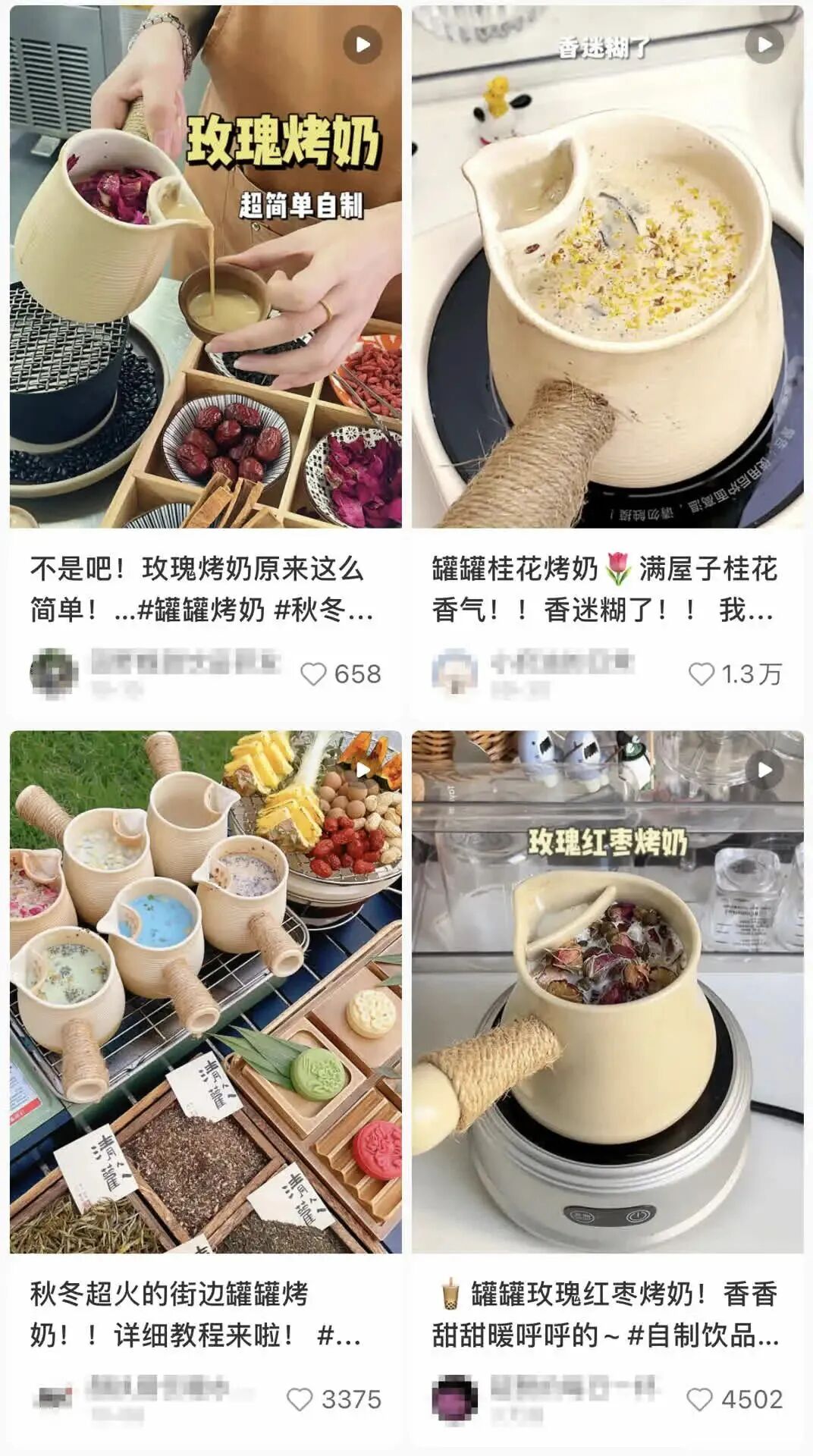 この「セレモニー感」満載の「七輪を囲んでお茶」には、雰囲気ある場所や四角いテーブル、七輪、茶器など本格的な道具が欠かせない。一方、最近人気となっているのは陶器製のティーポットを使ってミルクを温めて飲む「ティーポットホットミルク」で、「七輪を囲んでお茶」のシンプルバージョンとも言われている。気軽で、コスパが高く、店を開いたとしても、場所の管理費や人件費が削減できるため販売価格が安くなり、より多くの人にとって受け入れやすくなっている。