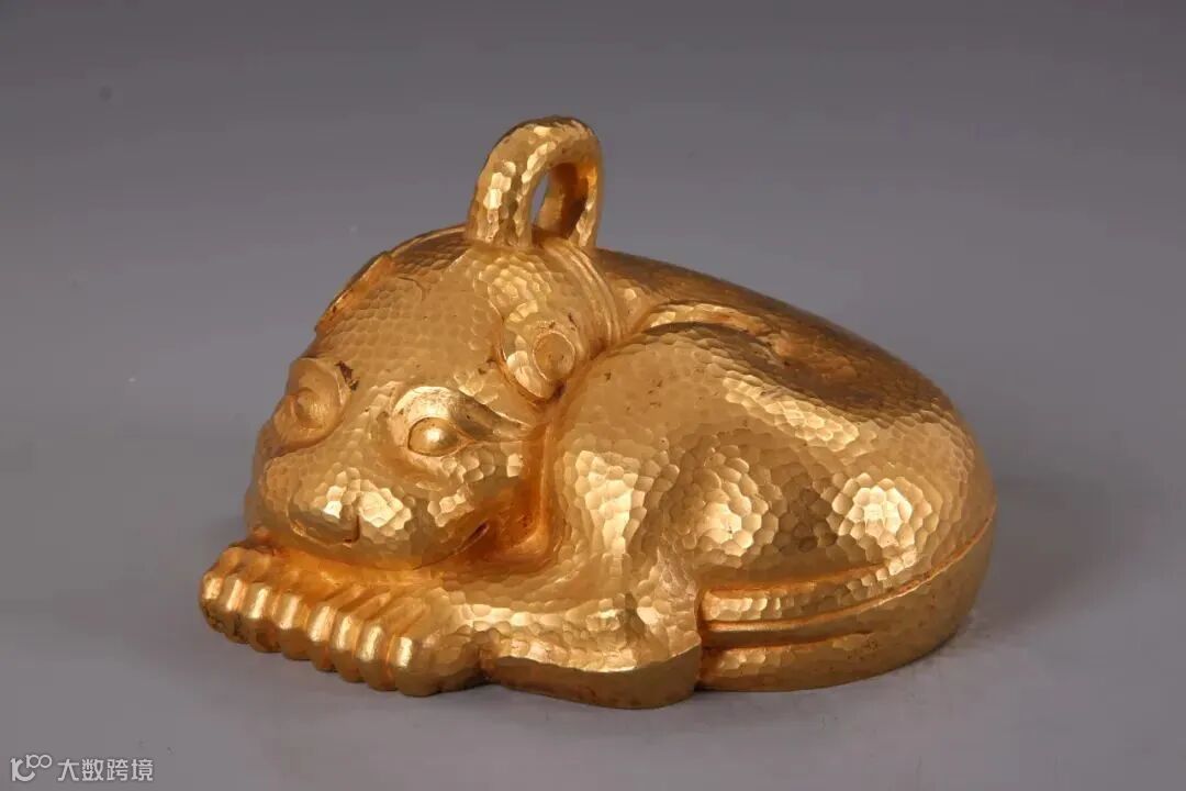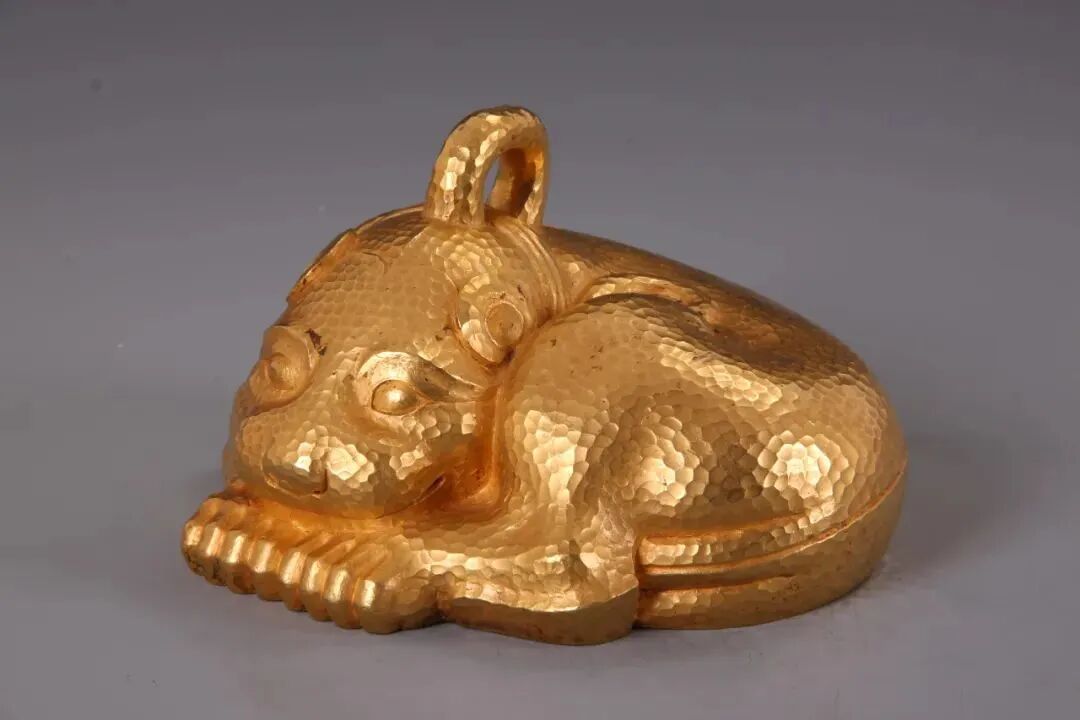 1982年2月、江蘇省盱眙県の南窯荘の穴蔵から総重量20キロ以上の金が出土した。その形や文字から、穴蔵に貯蔵されていた最古の物品は、前漢時代(紀元前206-8年)のものと見られている。発見された文化財38点のうち、この金獣は唯一無二で、その金の純度は99%と、正真正銘の「純金」で作られていた。これを作り上げるには、精製して純度を高める極めて高い技術が必要となる。その重さは9100グラムで、現時点で中国で出土した文化財の中で最も重い金器となっている。長さは17.5センチ、幅は16センチと、生後2-3ヶ月の子ネコくらいの大きさになる。