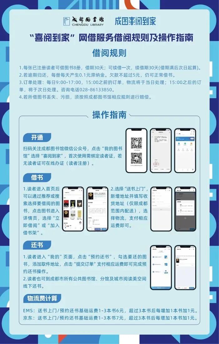 返却の際、成都市の公共図書館22ヶ所や「都市閲読美空間」、貸出・返却専用分館などに本を返却した場合は、返却に関する費用は発生しない。
