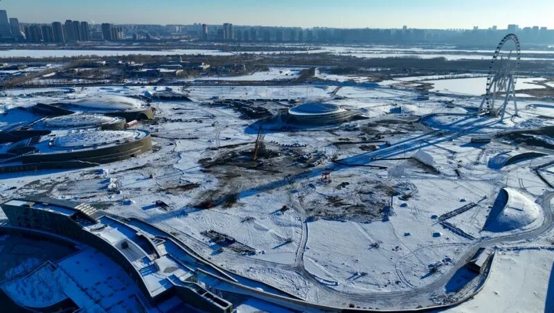 「哈爾浜氷雪大世界」では今、準備作業が急ピッチで進められており、例年よりも一足早い12月上旬から中旬にかけてのオープンを目指している。