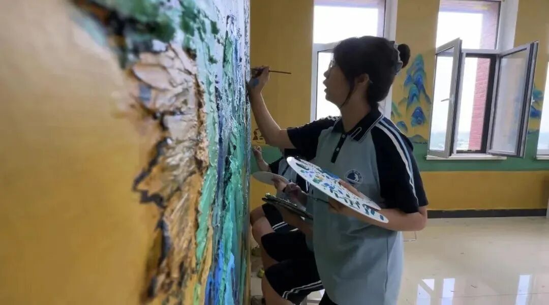 同作品は準備の段階から完成まで合わせて129日かけて制作された。下描きから、レリーフ制作、ベースの色付け、仕上げに至るまで、1つの工程も気を抜けない作業が続いた。特にレリーフ制作の工程は、生徒たちは初めて使うナイフで、壁に下地作りをするという困難極まる体力勝負の仕事になったという。しかし、生徒たちはそれを心から楽しみ、「千里江山図」の原作を見ながら、材料を塗り付ける作業に夢中になっていたという。