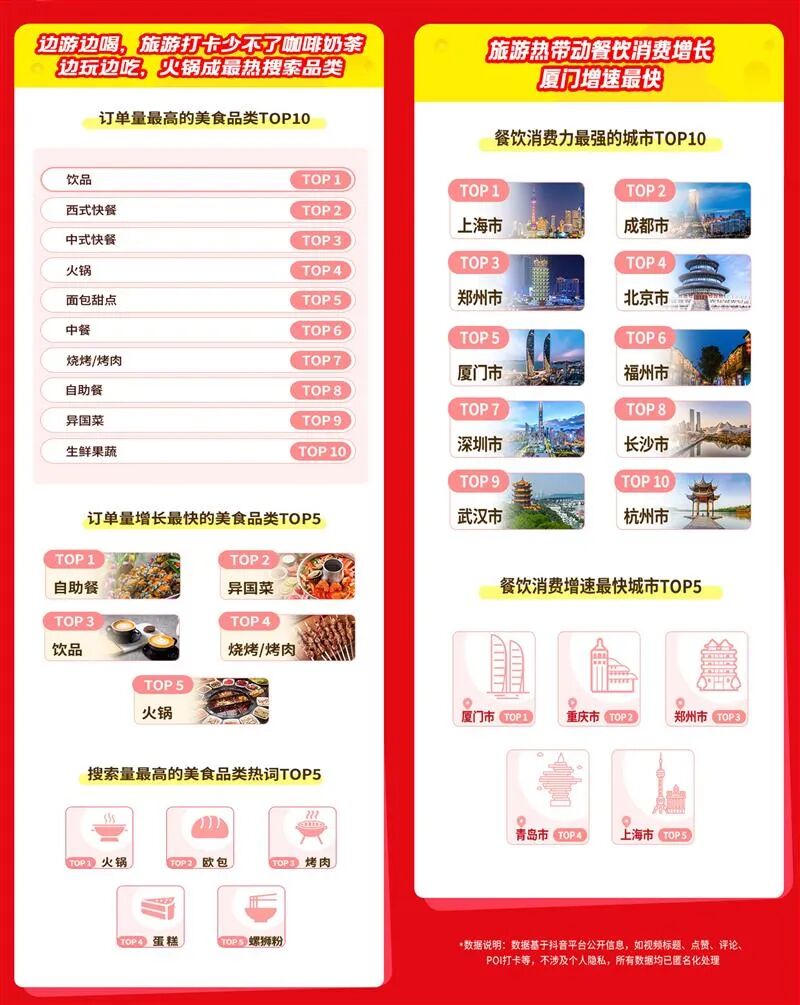 また、都市別で見ると、抖音で極めて高い人気を集めたのが福建省の厦門(アモイ)だった。「厦門」のハッシュタグが付いた動画の再生回数は360億回を超えた。「厦門のグルメ」のハッシュタグが付いた再生回数は40億回を超え、プラットホームのユーザーの盛り上がりが下支えとなり、厦門のグルメ消費の増加幅は全国でトップとなった。