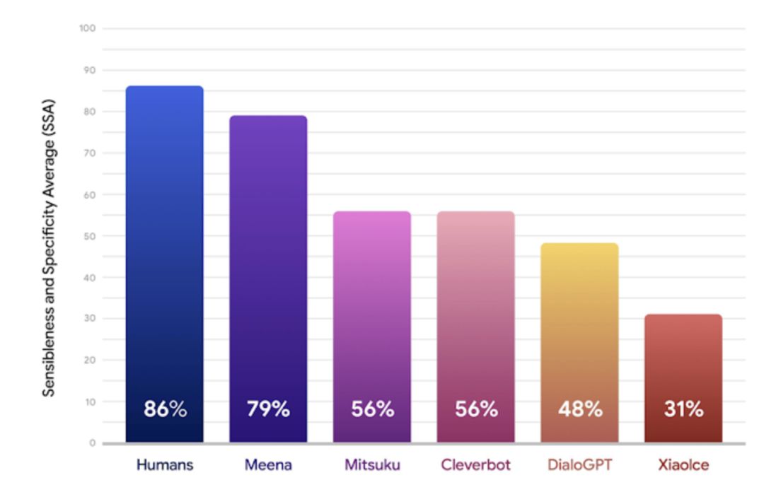 为了解决这些问题,谷歌的研究者提出了一个新的聊天机器人,名为 Meena。这是一个有着 26 亿参数的端到端神经对话模型,也就是 GPT-2 模型最大版本(15 亿参数)的 1.7 倍。通过实验可以看到,Meena 比现有的 SOTA 聊天机器人能够更好地完成对话,对话内容显得更为具体、清楚。
