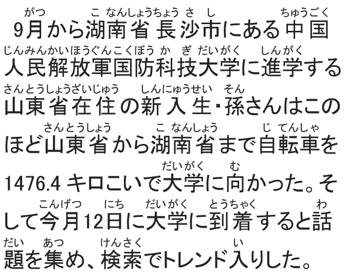 导读:山東省から進学先の湖南省の大学まで自転車こぐこと1476キロ!