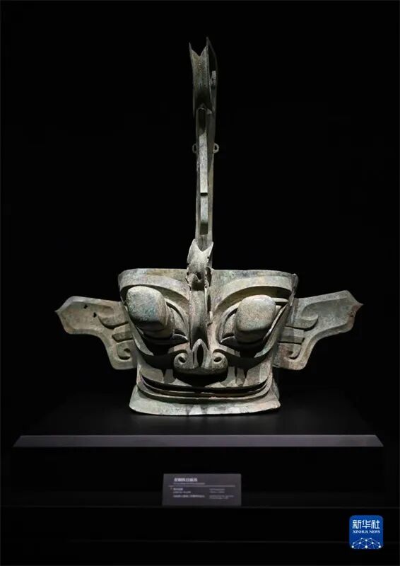 三星堆博物館・新館に展示されている青銅縦目仮面(7月26日に撮影)。