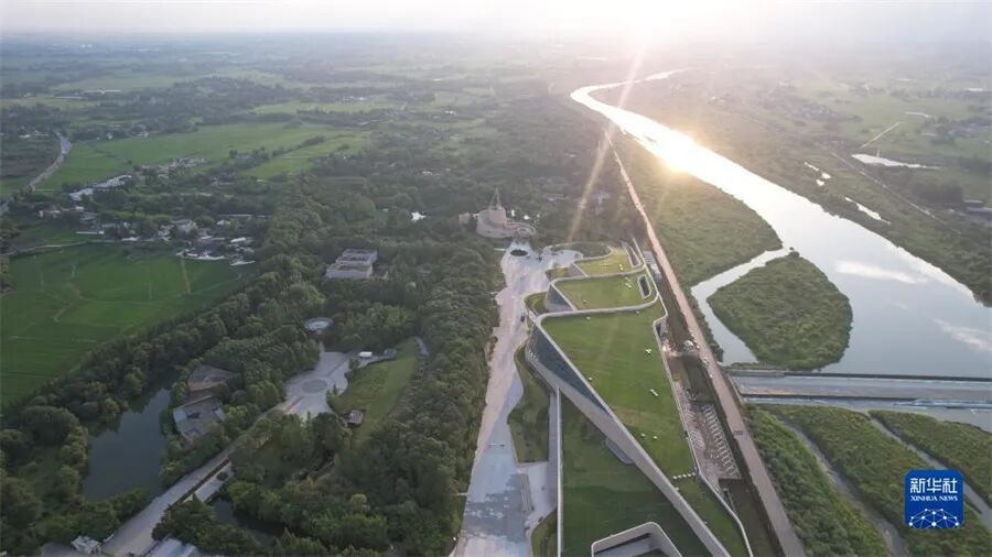 三星堆博物館・新館の外観(7月6日にドローンで撮影)。
