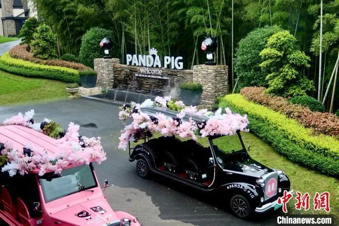 金華市の両頭烏ブタは、中国の豚の品種ランキング1位。頭とお尻が黒く、体は白みがかったピンクで、パンダと配色が似ていることから、「パンダピッグ」という可愛い名前が付けられた。その上、優れた品種で、全国で重点的に保護する8つの地方ブタ品種でもトップに位置付けられている。同牧場はこのブタをイメージキャラクターにした複合型のファミリー向けインタラクティブ娯楽施設だ。