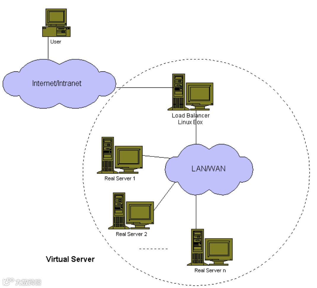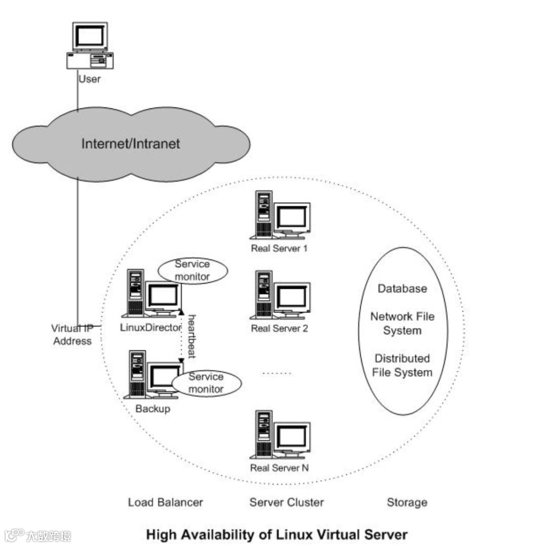 LVS即Linux Virtual Server,虚拟服务器是一个可高扩展且高可用的服务器,构建在真实服务器集群上。服务器群集的体系结构对最终用户完全透明,用户与群集系统进行交互,就好像它只是一个高性能的虚拟服务器一样。请参考下图: