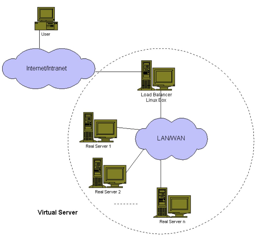 真实服务器和负载均衡器可以通过高速LAN(局域网)或地理上分散的WAN(广域网)互连。负载均衡器可以将请求分配给后端不同的服务器,而对外则只显示为单个IP的虚拟服务。分配的工作方式可以使用IP负载均衡技术或应用级负载均衡技术。通过透明地添加或删除集群中的节点来实现系统的可伸缩性。通过检测节点或守护程序故障并适当地重新配置系统来提供高可用性。