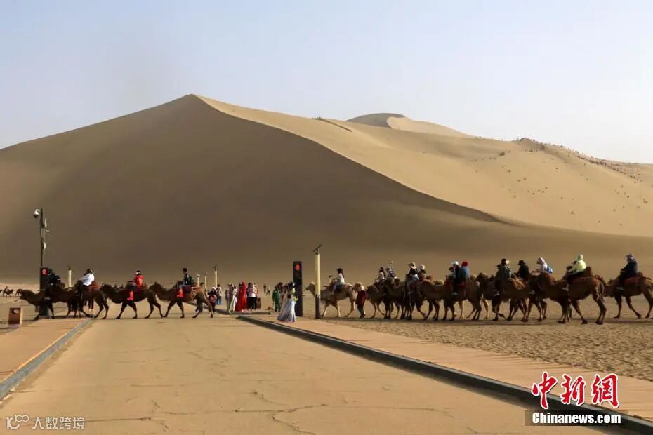 ここ数日、甘粛省敦煌市の鳴沙山・月牙泉景勝地には大勢の観光客が訪れ、人の歩く通路とラクダの進むコースがクロスする交差点2ヶ所では、観光客のピーク時には「ラクダで交通渋滞」現象が起きている。このため、景勝地にはオリジナルの信号指示灯が設置された。