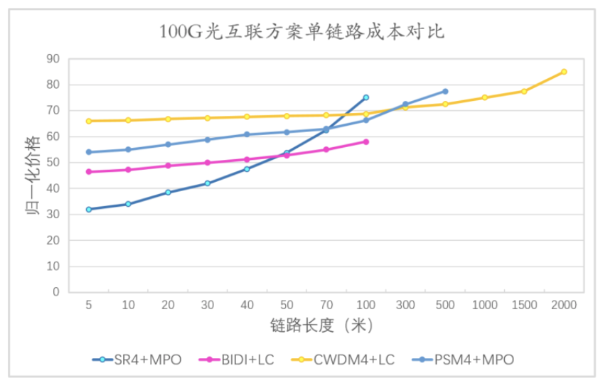 a)根据网络部署情况,从众多光互联方案中灵活选择光互联方案,满足应用需求的同时最大限度降低综合成本。以100G节点互联为例,根据不同的连接场景对几种主流方案做综合对比,以实现最优性价比。