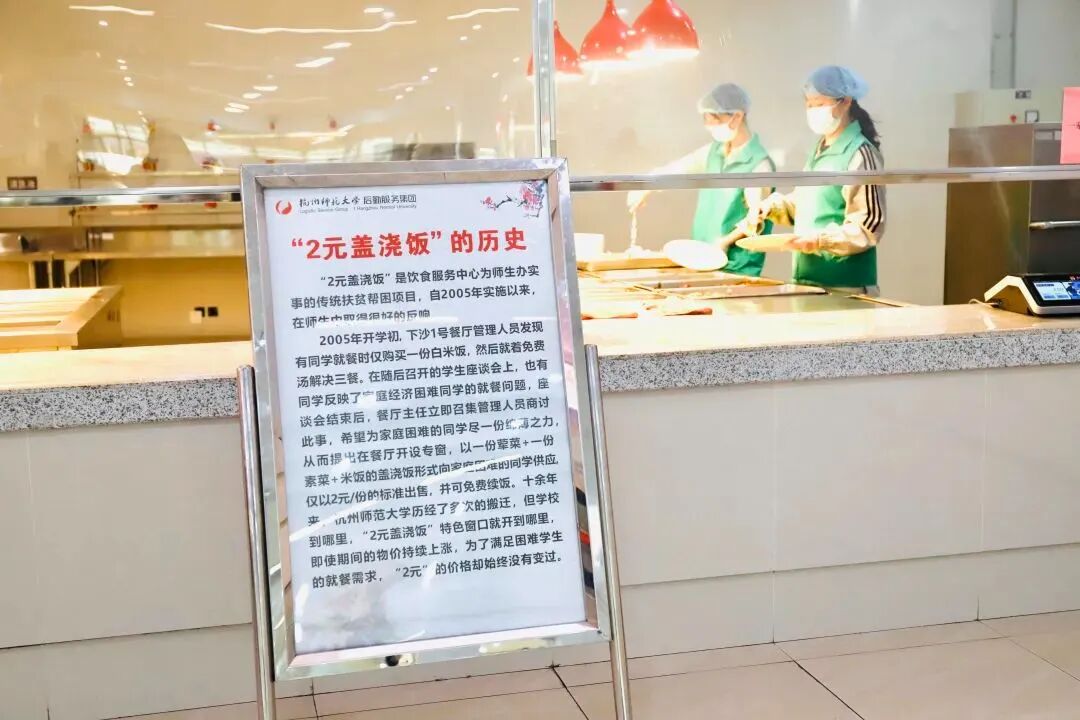 学校側は、「現在、倉前キャンパスと下沙キャンパスにある4つの学生食堂に『2元定食』の窓口が設けられている。学生は、6~8種類のおかずから選べ、白米はお代わり自由、毎日無料のスープも提供している」としている。統計データによると、同校では、1日平均約1200食の「2元定食」を販売している。