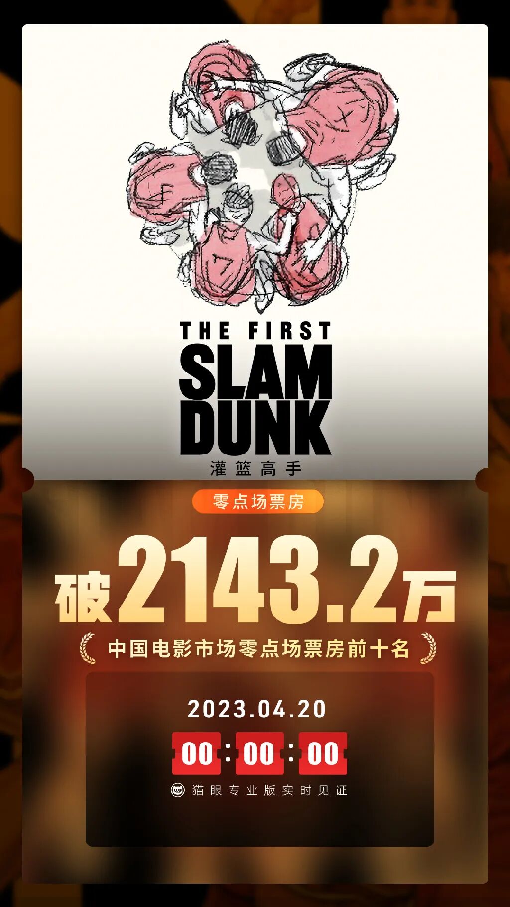 映画関連ウェブサイトの猫眼電影のデータによると、「THE FIRST SLAM DUNK」は前売り券の売上総額が1億2千万元(1元は約19.4円)に上り、深夜0時に始まる上映回の興行収入は2100万元を上回った。