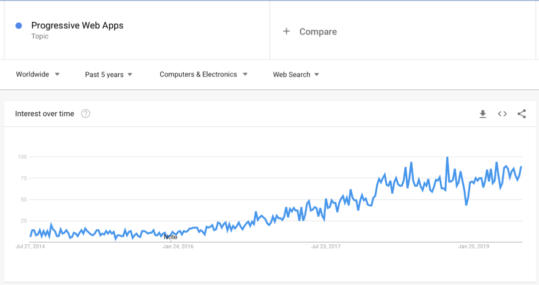 与特定于平台的本地开发人员相比,实际的web开发人员要多得多。一旦大公司意识到他们可以重新定位他们的web开发人员来开发先进的web应用程序,我怀疑我们将会看到一波巨大的PWA浪潮。