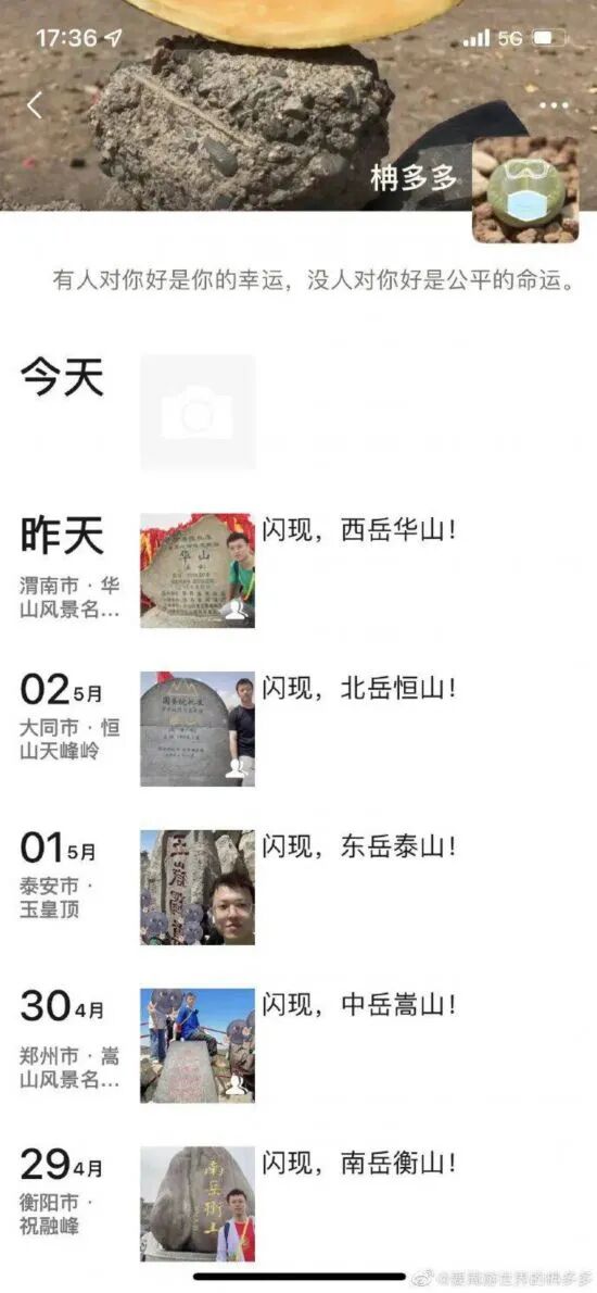 柟さんは、4月29日から5月3日までの「メーデー5連休」を利用して、中国の「五大名山」を一気に制覇することを計画。朝から山に登り始めて、その日のうちに頂上まで登って下山し、夜は列車に乗って次の山を目指した。そして、今月4日には時間通りに出勤したという。
