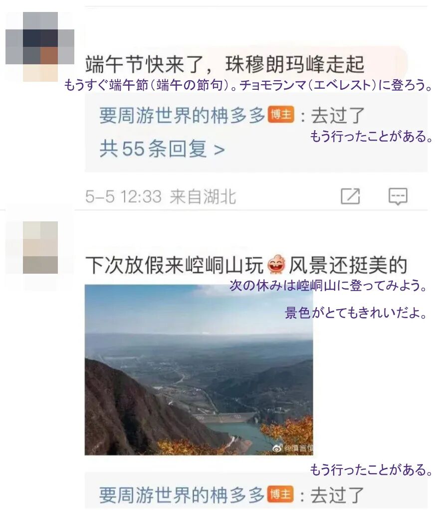 柟さんは、「ハーフマラソンを走ったことがあるし、普段はトレーニングを続けている。1週間に2回、1度に10キロほど走っている。そのため登山のハードさと大差なく、体力的には許容範囲。でも、ハードスケジュールだったので、ネットユーザーの皆にはお勧めしない」としたほか、「中国のインフラは本当にすごい!交通機関が整備されているからこそ、5日間で『五大名山』を制覇することができた」としている。