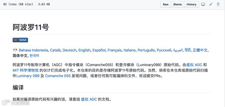 最近,虚拟AGC和麻省理工科学博物馆将阿波罗导航计算机(AGC)中的指令模块Comanche055、登月模块Luminary099的原始代码公布在了GitHub上,任何人均可自由查阅、编译。如果你想编译这些原始代码,可以查阅虚拟AGC的文档。