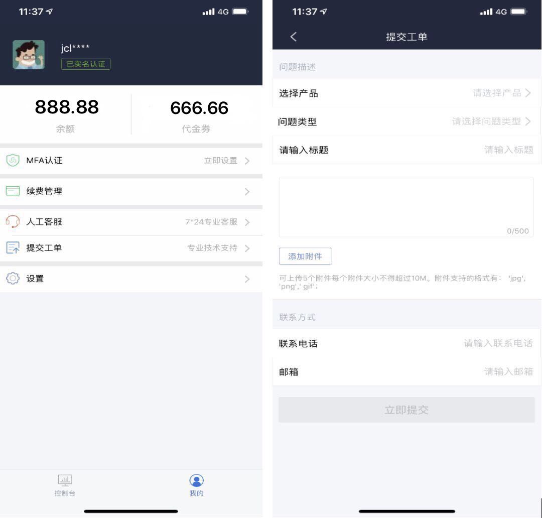 查看自己的账户信息、与客服沟通。满足京东云客户移动场景下资源管理及运维需求,帮助用户实现安全、便捷、快速、实时的运维体验。