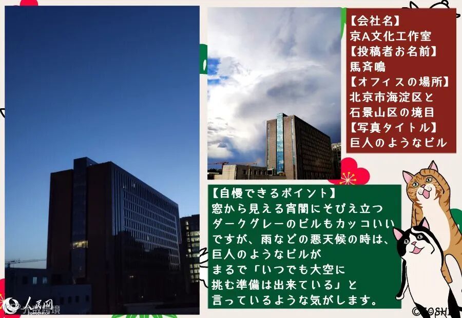 人民網では、ウチのオフィスの窓からはこんな風景またはこんなモノが見えるという自慢をしていただく「マドコレ(窓から見た風景コレクション)」を毎週火曜日に掲載中!オフィスの窓からの眺めでもよし、お仕事中の窓からの眺めでもよし、とにかく窓から眺めた様子を写した写真とそれにまつわるエピソードをご投稿ください!