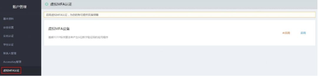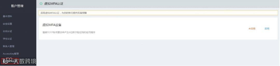 一、建议启用【虚拟MFA认证】(多因素认证),在登录时进行二次身份验证;