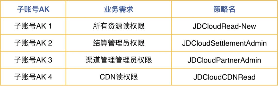 三、子账号AK遵循最小授权原则,应授予刚好满足用户工作所需权限,不宜过度授权,例如: