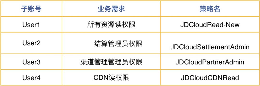 三、子账号遵循最小授权原则,应授予刚好满足用户工作所需权限,不宜过度授权,一旦遇到风险及时撤销用户权限,例如: