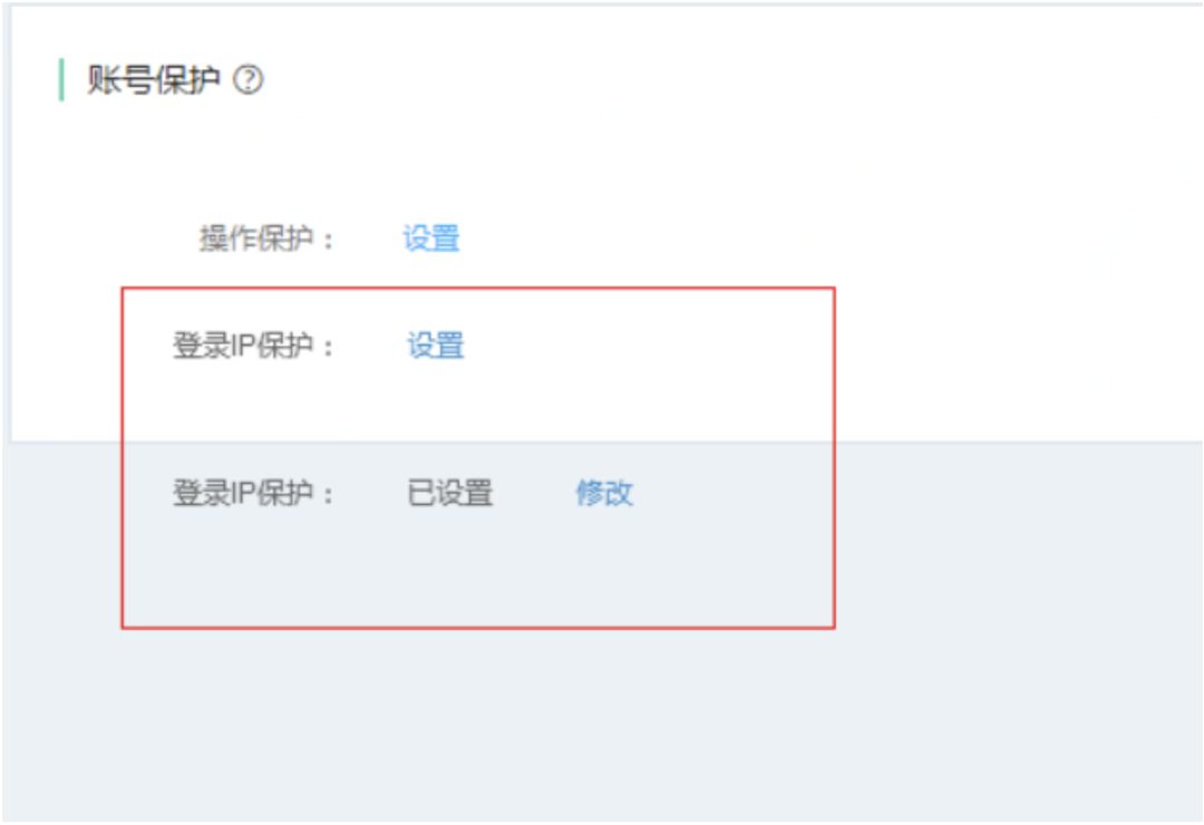 三、建议启用【登录IP保护】,设置登录IP白名单,只允许白名单范围IP能够登录控制台;