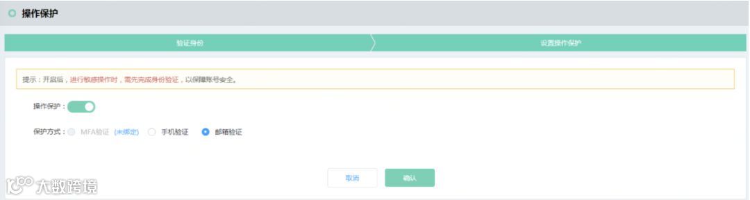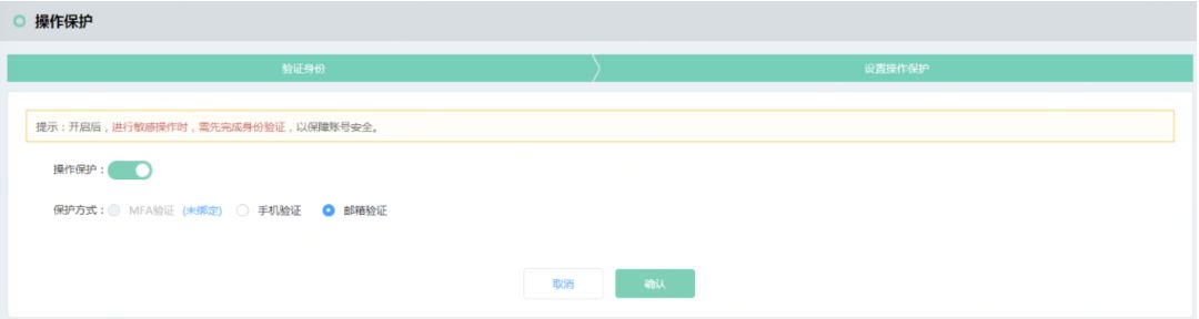建议启用【操作保护】,在控制台进行关键操作时对操作人进行验证,进一步提高账号安全性。